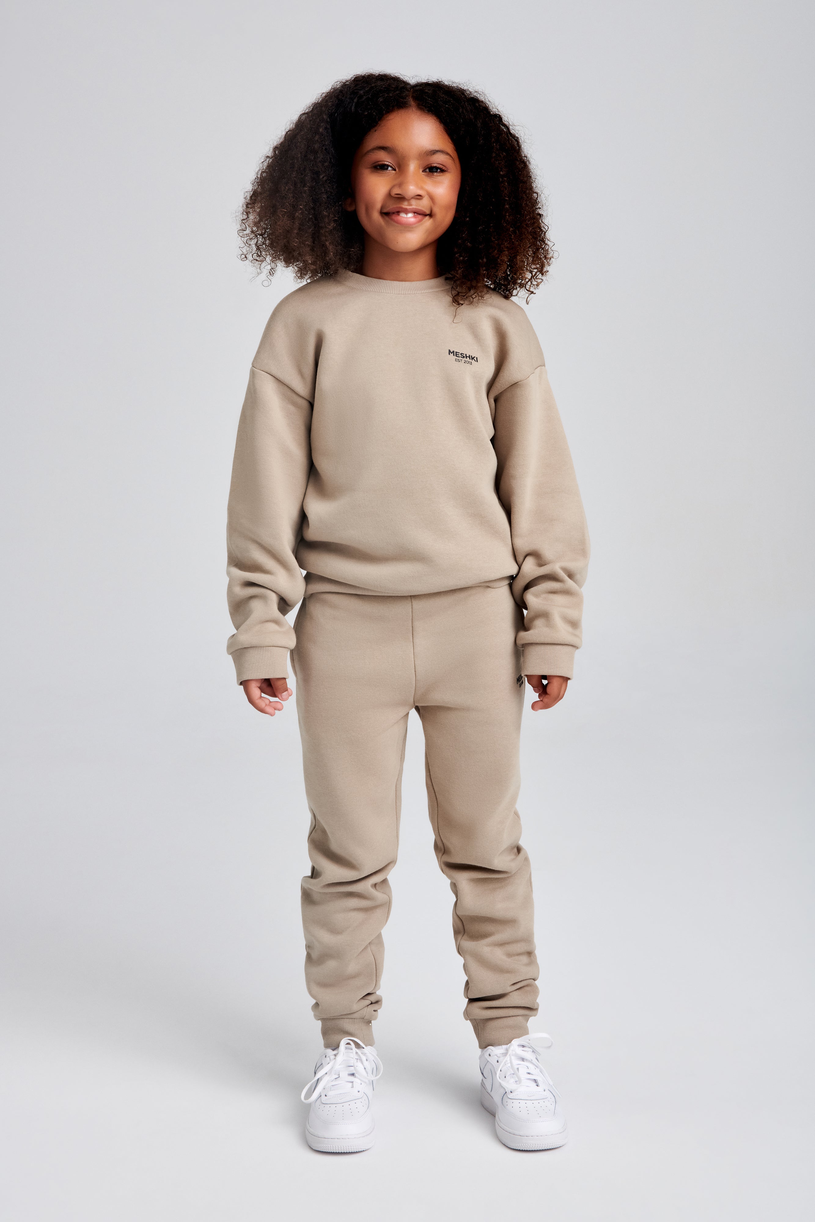 This is our replica take on the adult-sized PHOENIX Oversized Crew Neck Jumper. Made to fit your little human comfortably, this oversized piece features a dropped-shoulder silhouette, long hemline, and billowy sleeves. The neckline, sleeve cuffs, and hem are elasticated ribbing for a snug fit. MESHKI’s patented fabric blend to ensure they’ll stay feeling soft, warm, and bundled-up. Match with our Frankie Kids Joggers for that perfect athleisure moment.